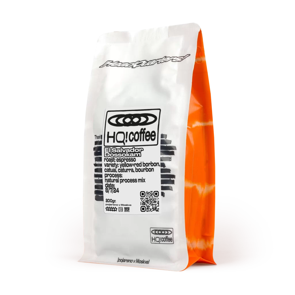 Сальвадор Доссакам. Авангардный кофе от Андреса Салаверии в обжарке для эспрессо. Смесь разновидностей таких как: бурбон, жёлтый бурбон, красный бурбон, катуаи и катурра. Лёгкая анаэробная ферментация с сушкой техникой «sleeping bag».